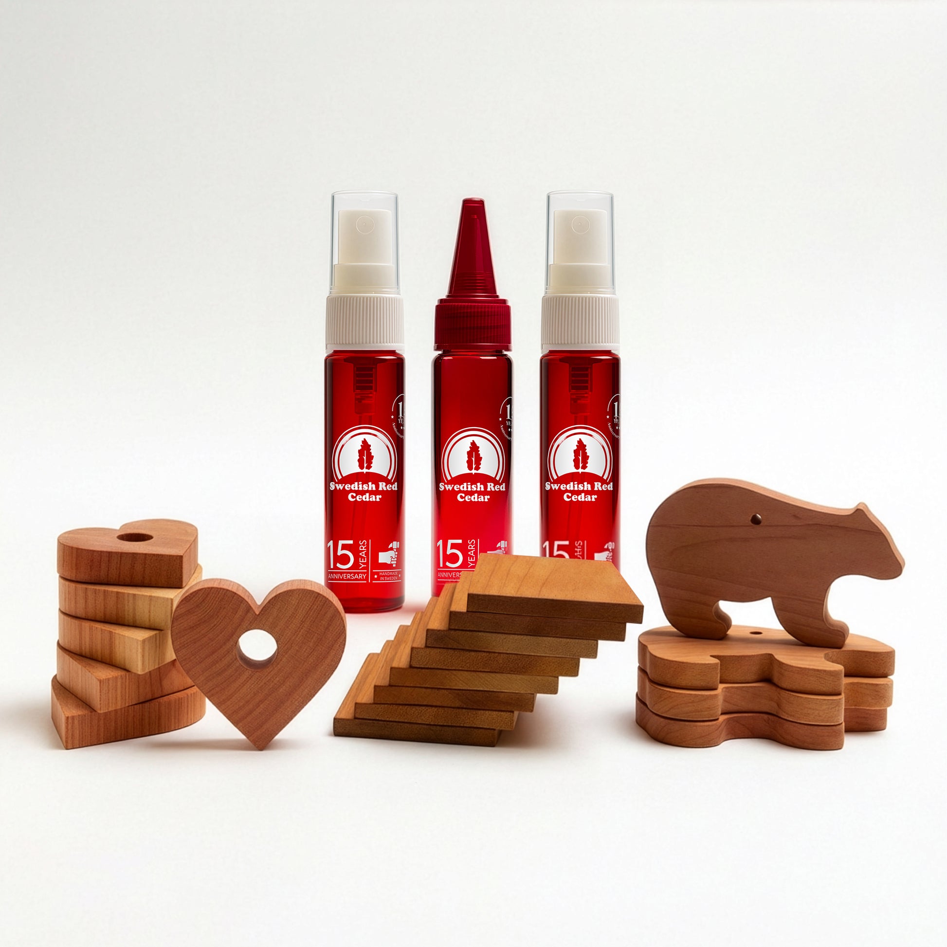 Rödceder Familjekit är vårt största paket med rödceder för hela hemmet. Här får du extra mycket rödcederolja och tre olika typer av rödcederträ – hjärtan, tunna block och björnar – så att du kan sprida ut rödceder i både garderober, lådor och på hyllor.